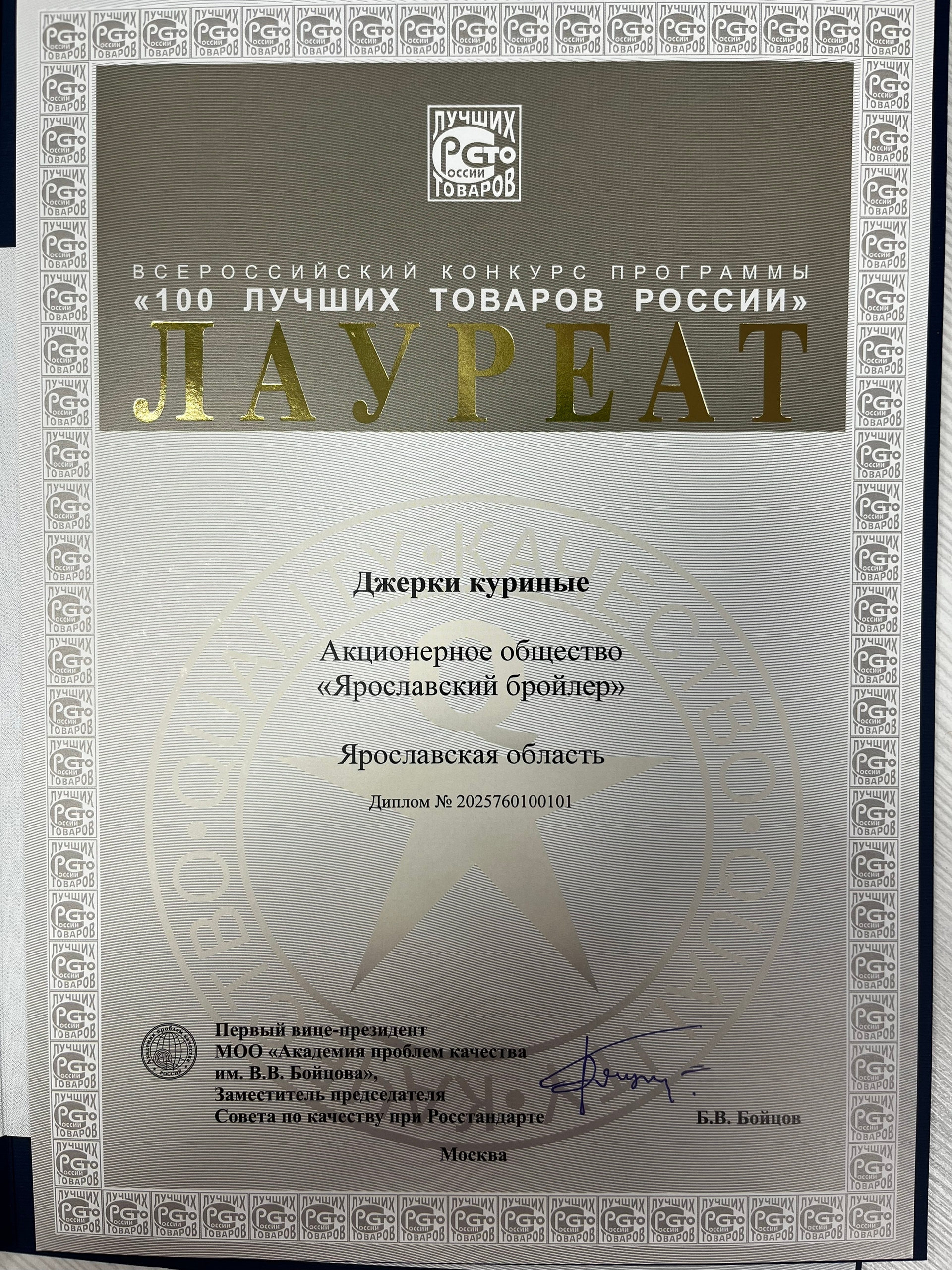 Это яркое подтверждение того, что наше предприятие уверенно развивается, улучшая качество продукции и занимая достойное место среди лучших на федеральном уровне.